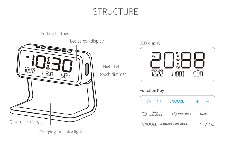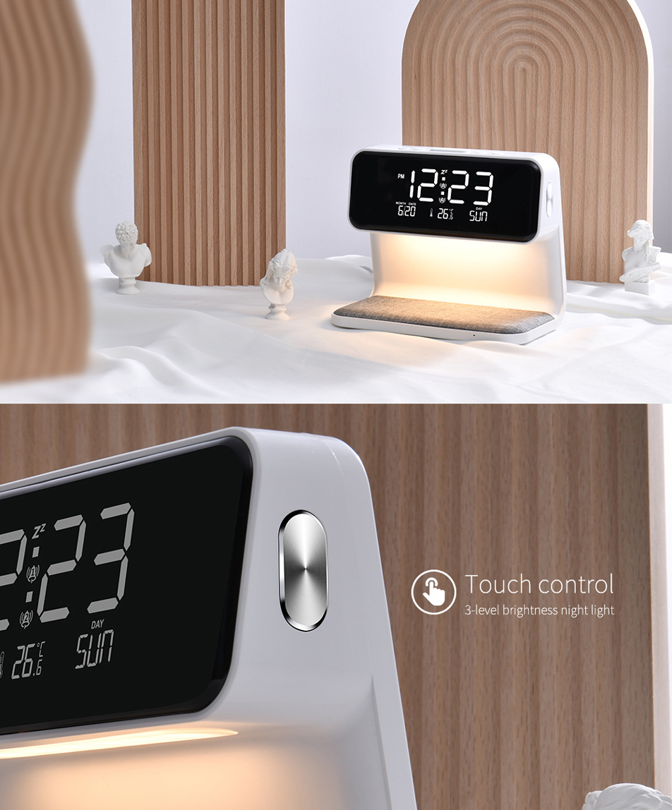 无线充小夜灯触摸调节万年历时间卧室插电台灯